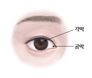 우리 눈은 검은자와 흰자로 이루어져 있는데, 이 중 검은자를 덮고 있는 부위를 각막이라고 합니다. 각막이 검게 보이지만 실제로 빛이 없고 투명한 부분으로, 혈관이 없는 특성상 대기로부터 눈물을 통해 산소를 공급받습니다. 각막은 눈의 창문 역할을 하며 외부로부터 눈을 보호하고 빛을 통과시키고 굴절시켜 볼 수 있도록 합니다. 각막이 손상되고 혼탁해지면 기능적인 부분에 문제가 없더라도 빛이 안구 내로 들어갈 수 없어 시력장애가 발생합니다.