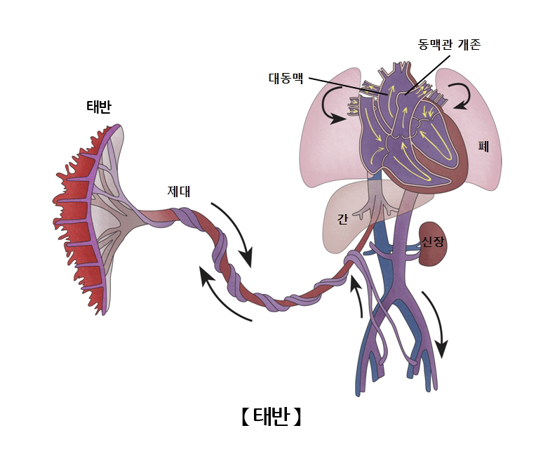 태아는 산소와 이산화탄소를 교환하는 폐의 기능이 없기 때문에 태반을 통해 산소와 이산화탄소를 교환하여 호흡이 가능하게 됩니다.