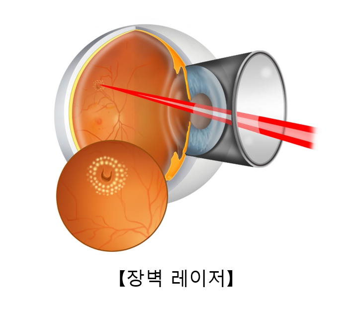 망막 열공의 크기가 크지 않고 주변의 망막이 심하게 떨어져 있지 않은 경우, 열공 주변에 레이저 치료를 시행합니다. 레이저는 망막에 화상을 일으켜 열공이 더 이상 주변으로 확대되지 않도록 할 뿐만 아니라 접착제의 역할을 합니다.