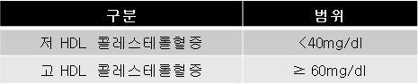 남성은 40mg/dL이상, 여성은 50mg/dL이상이 정상입니다.