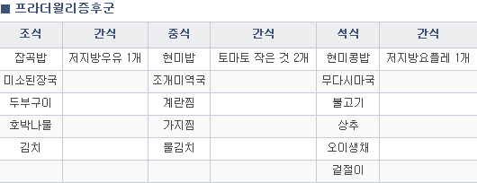 2. 당뇨가 동반된 경우 당뇨 식사요법의 기준에 따릅니다.