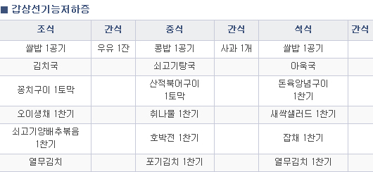 3. 변비가 있을경우 고섬유소 식사(채소, 과일, 해조류 및 전곡류, 콩류 등) 와 함께 수분을 충분히 섭취합니다.